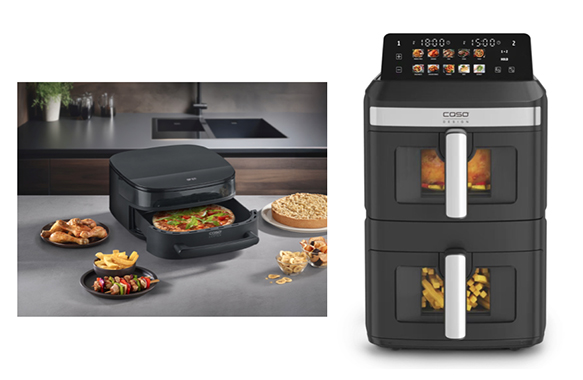 Im Segment der AirFryer stellt Caso Design zwei neue Highlights vor: Mit dem AirFry & PizzaChef kann zusätzlich zu innovativen Funktionen sogar eine ganze Pizza bis 30 cm Durchmesser gebacken werden. Die XXL-Heißluftfritteuse AirFry DuoTower bietet bei kleiner Standfläche ein Gesamtvolumen von mehr als 12 Litern sowie ein doppeltes Heizsystem für jede Kammer und eignet sich für große Haushalte und Familien.