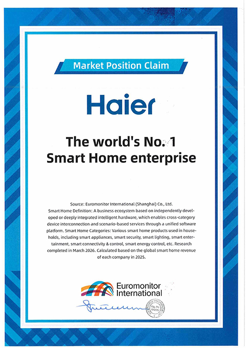 Der chinesische Konzern Haier, gemäß den Daten des Marktforschungsunternehmens Euromonitor seit 17 Jahren nach Volumen die weltweit führende Marke für Haushaltsgroßgeräte, ist jetzt von der Organisation auch als das weltweit führende Smart-Home-Unternehmen bennannt worden. Ausschlaggebend dafür sind die globalen Umsätze im Smart-Home-Segment, zu dem u. a. vernetzte Hausgeräte sowie Lösungen für Sicherheit, Beleuchtung und Energiemanagement gehören.