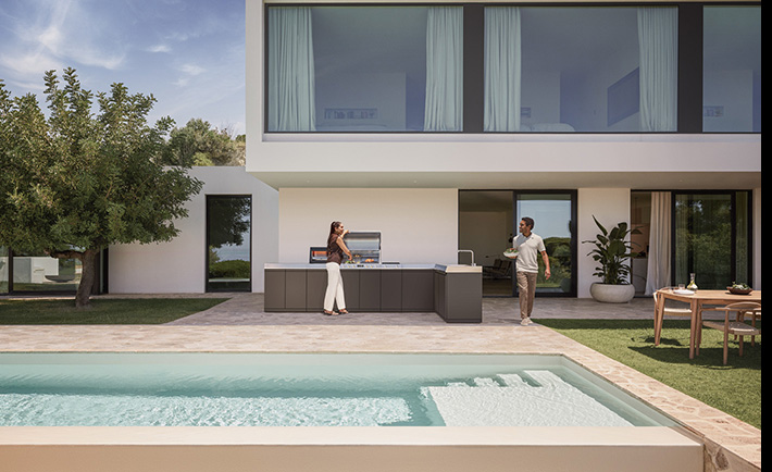 Die Miele Outdoor-Küche „Dreams“ ist ein aufeinander abgestimmtes System: Rund um den Grill können Kundinnen und Kunden ihre Outdoor-Küche ergänzen – etwa um ein Kochfeld, einen Oberhitzegrill, ein Spülmodul oder einen Outdoor-Kühlschrank. Unterschiedliche Stauraummodule mit Schubladen oder Einlegeböden sorgen dafür, dass Grillhelfer, Gewürze und Geschirr immer griffbereit bleiben. Über 60 Zubehöre bieten darüber hinaus die Möglichkeit, die Outdoor-Küche weiter auf die eigenen Wünsche zuzuschneiden – mit Zubehören für den modularen Garraum oder den Modulschrank.